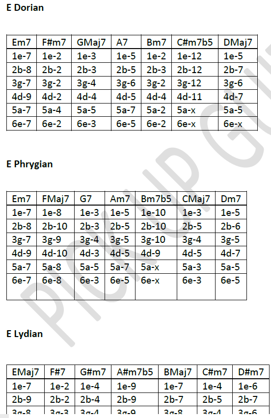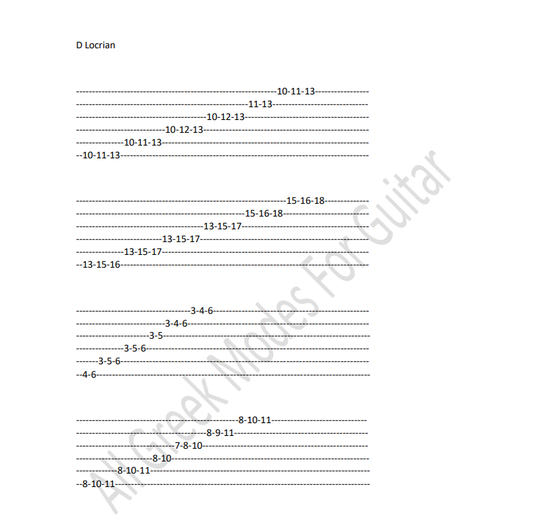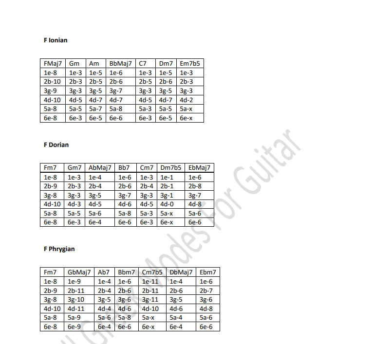 Pdf with the Chords and scales (Tabs) of all the greek modes for guitar in every key